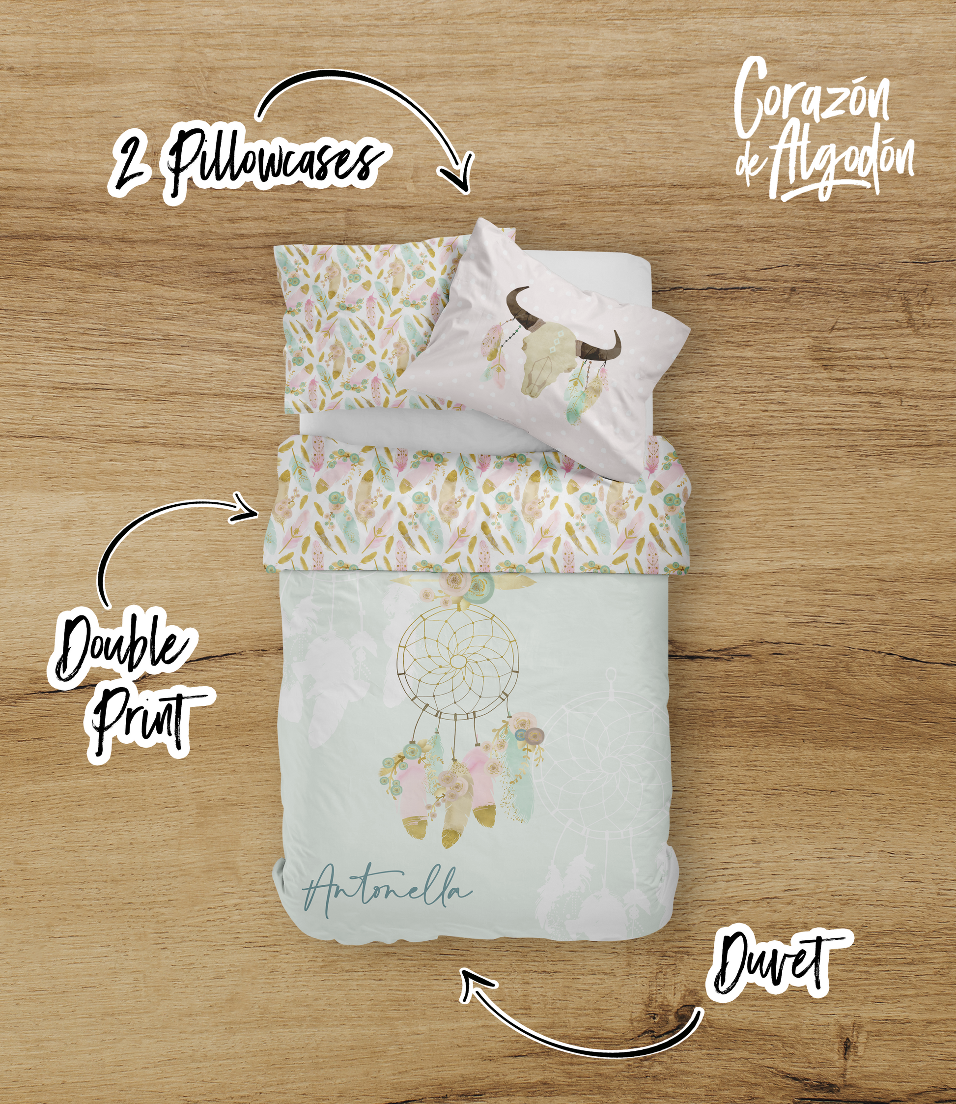 We also do for the grown-ups in the house! If your little ones share a room or have a special idea, look no further, our bedding sets are 100% personalized.